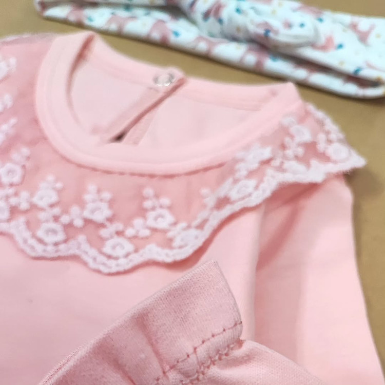 جنس تمام نخ پنبه باکیفیت و عالی یقه تور پشت دکمه که راحت بره تو سر کوچولوها قابل ست شدن با همه چیز.