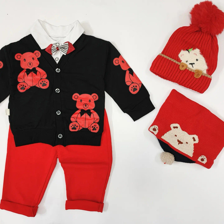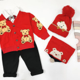 سه تیکه وارداتی بلوز شلوار کت تدی بچگانه در سه رنگ