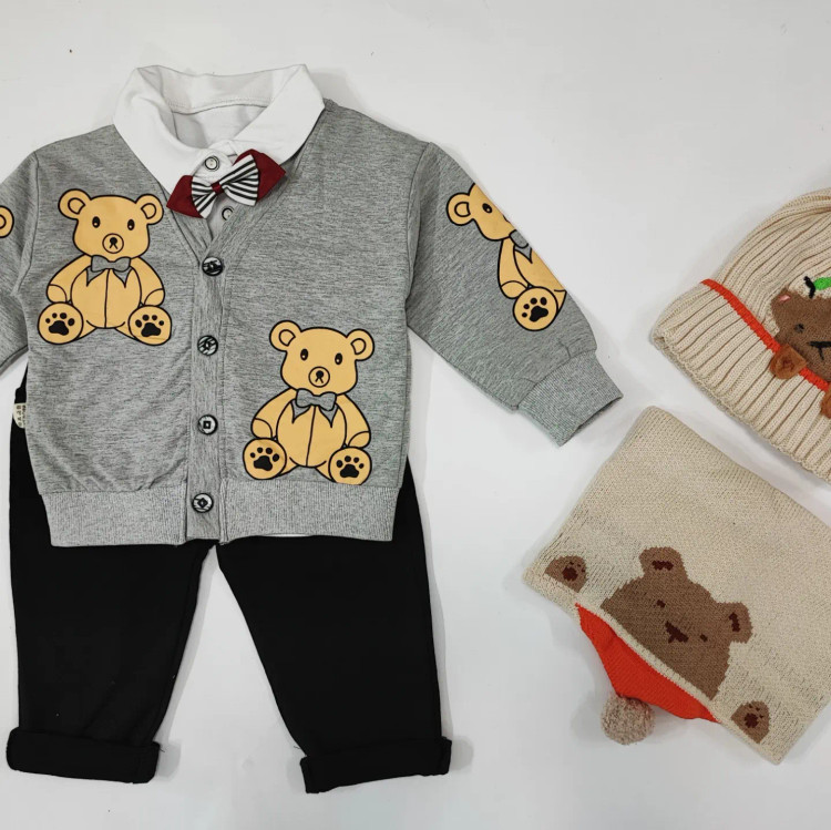 سه تیکه وارداتی بلوز شلوار کت تدی بچگانه در سه رنگ