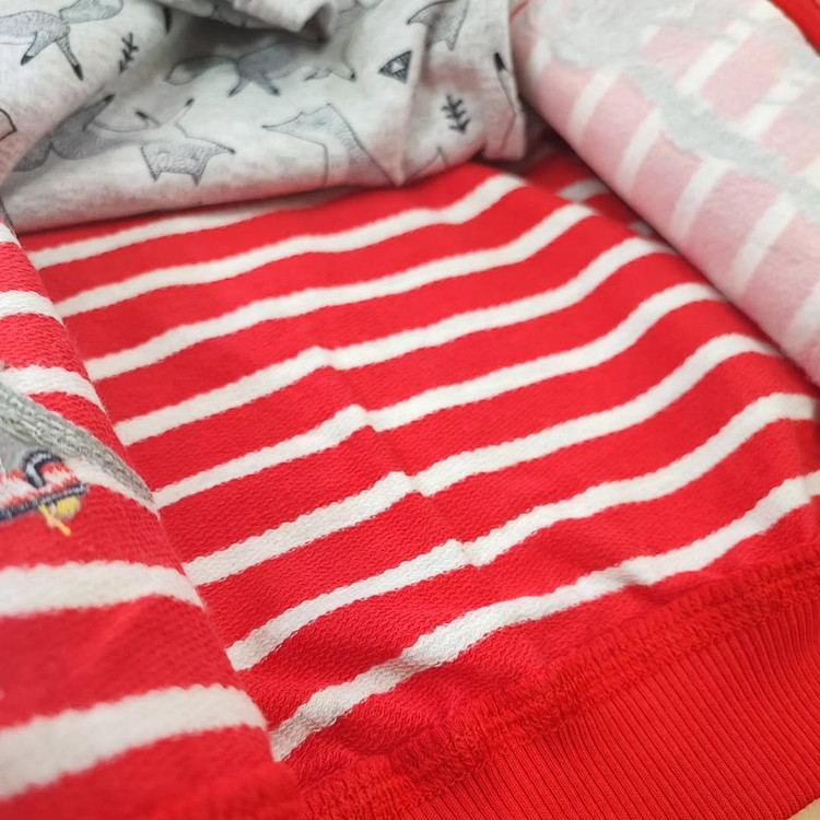 ۱۲_۱۸ماه:قد بادی۴۳/پهنا بادی۲۴ که تا ۴_۵ سانت هم کشسانی داره/قد شلوار ۴۷/قد سوییشرت۳۳/پهنا سوییشرت ۳۲