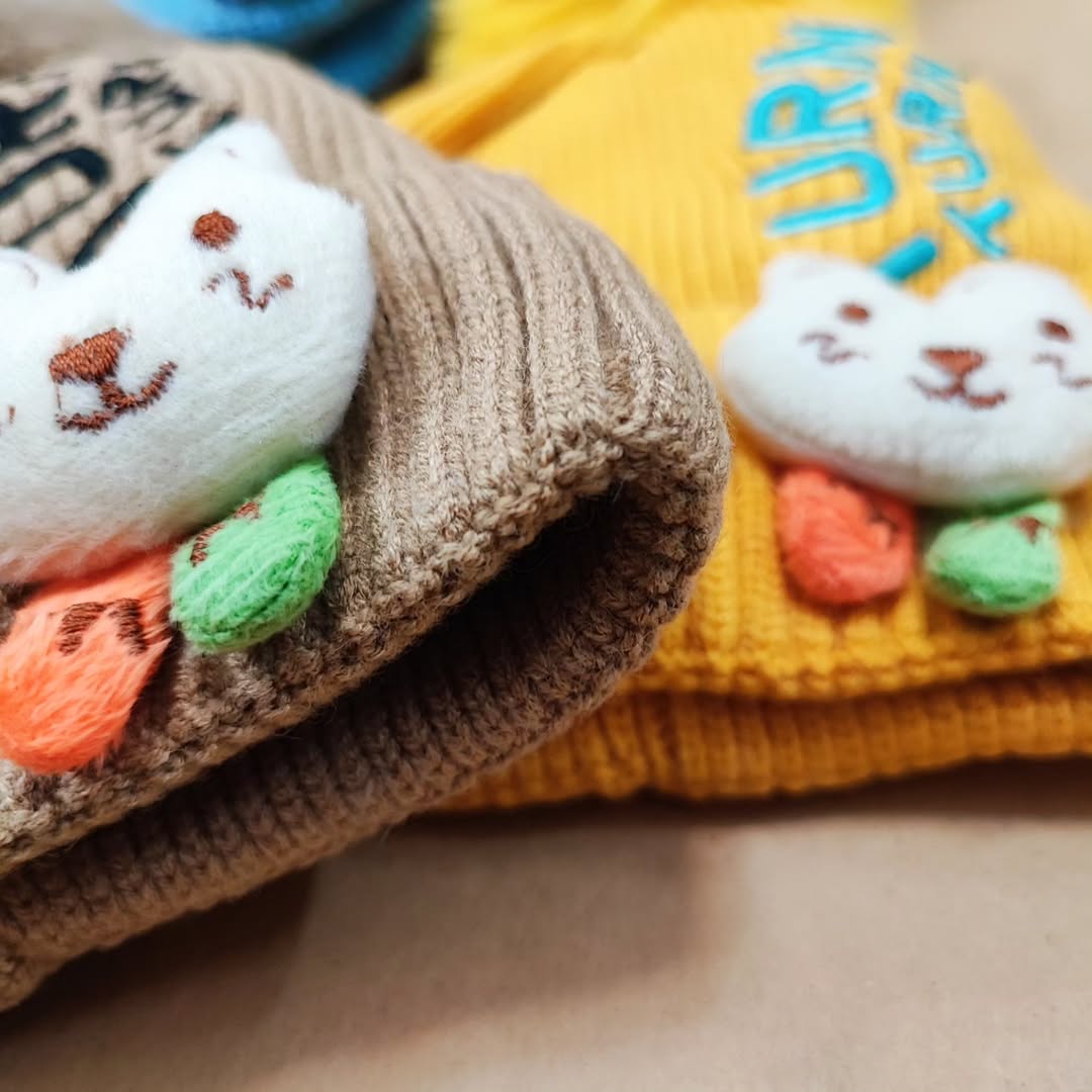 کلاه بچگانه وارداتی پوم دار داخل آستر نرم و بسیار گرم رنگهای متنوع و زیبا کشسانی بالا از ۱تا۳سال