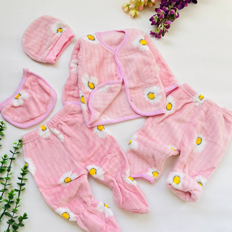 ست تیکه حوله‌ای نوزادی طرح بابونه