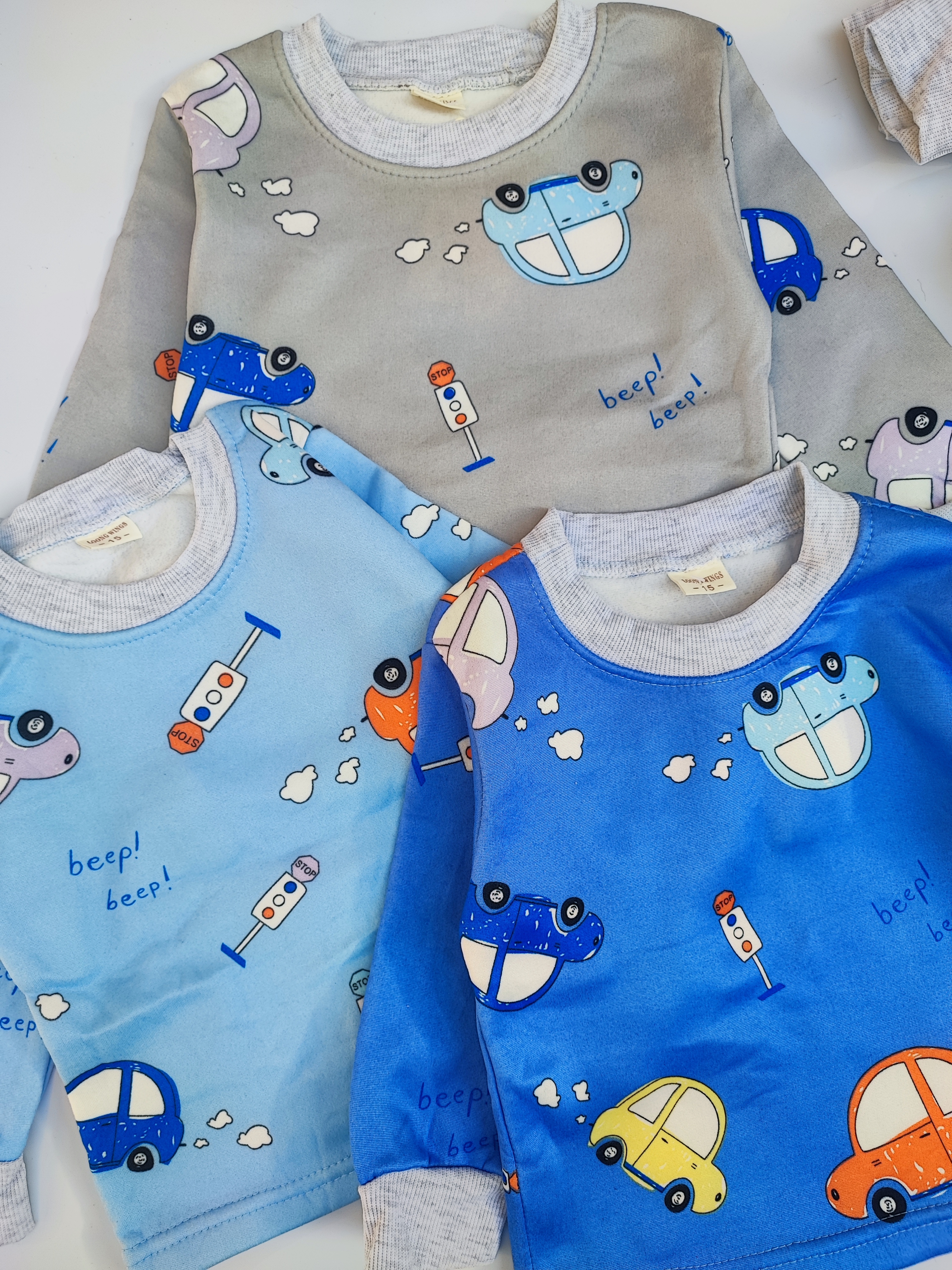 بلوز و شلوار تو کرکی طرح ماشین وارداتی حدود سن ۱ تا ۳ سال