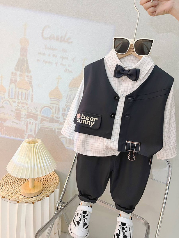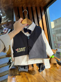 شامل پیراهن نخی سفید، جلیقه مشکی، پاپیون و شلوار – یک انتخاب عالی برای مهمانی، جشن و عکاسی و عید
