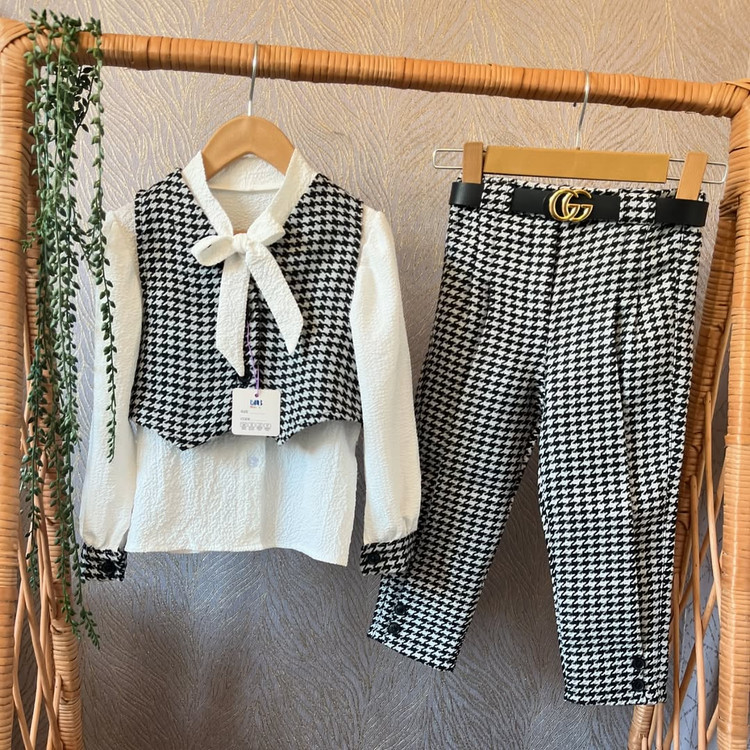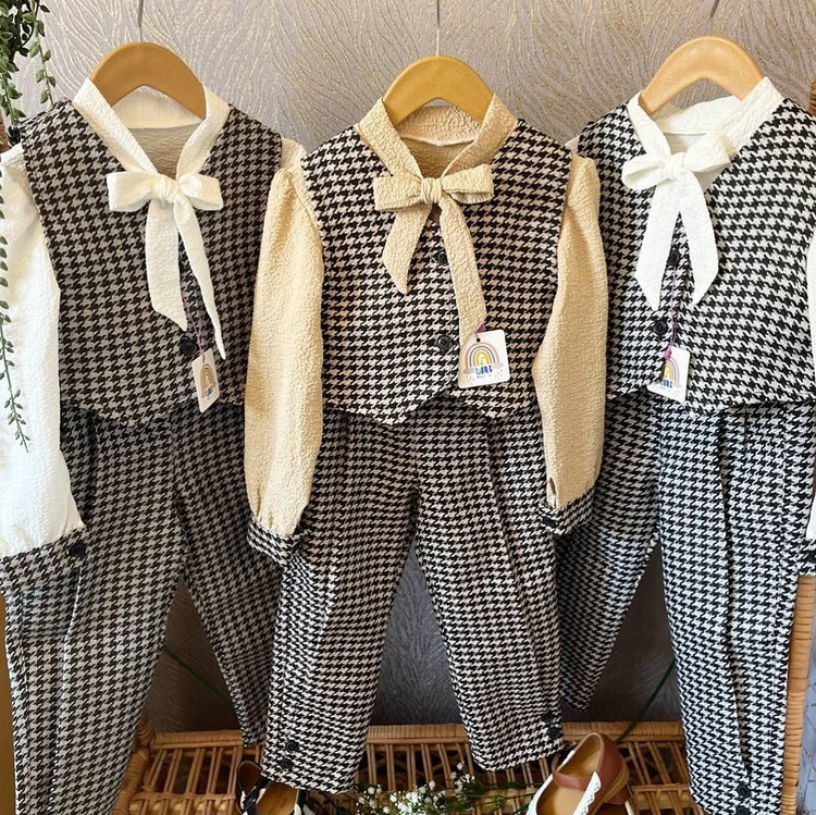 ست سه تیکه شومیز شلوار و ژیله دخترانه