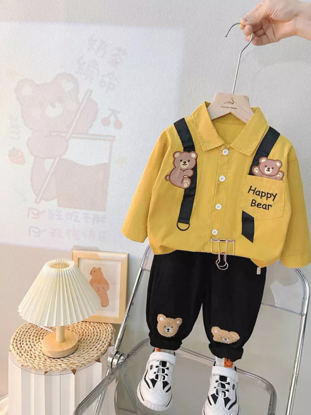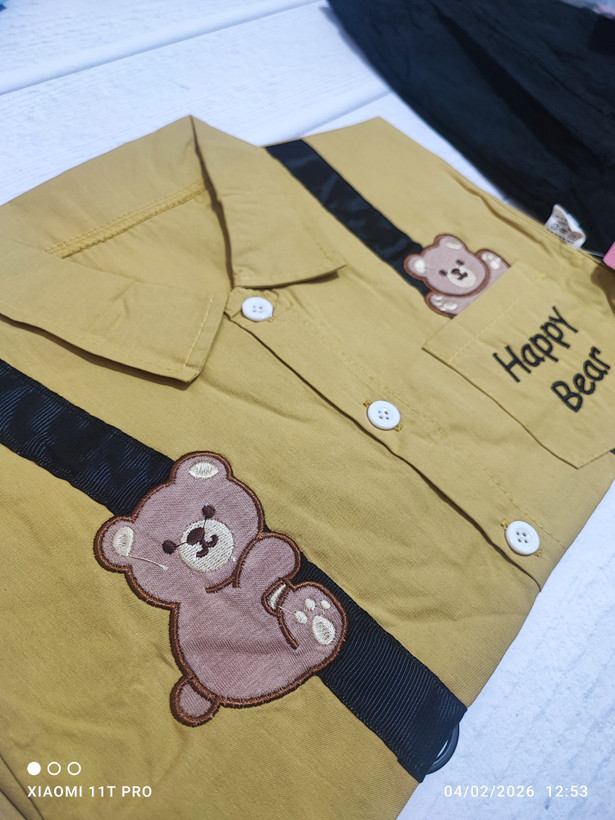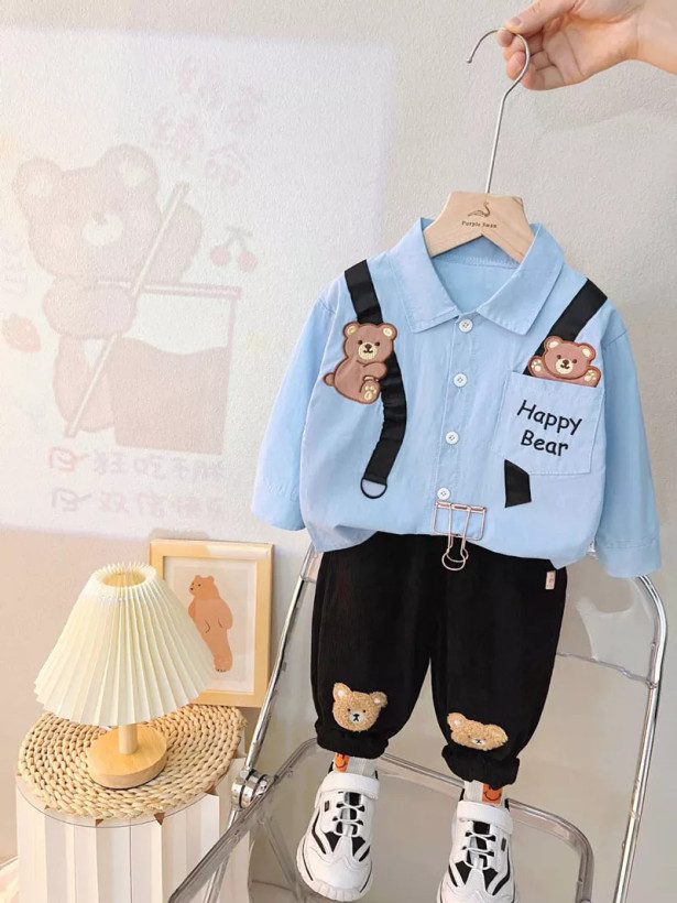 ست پیراهن و شلوار کبریتی بچگانه طرح خرس Happy Bear