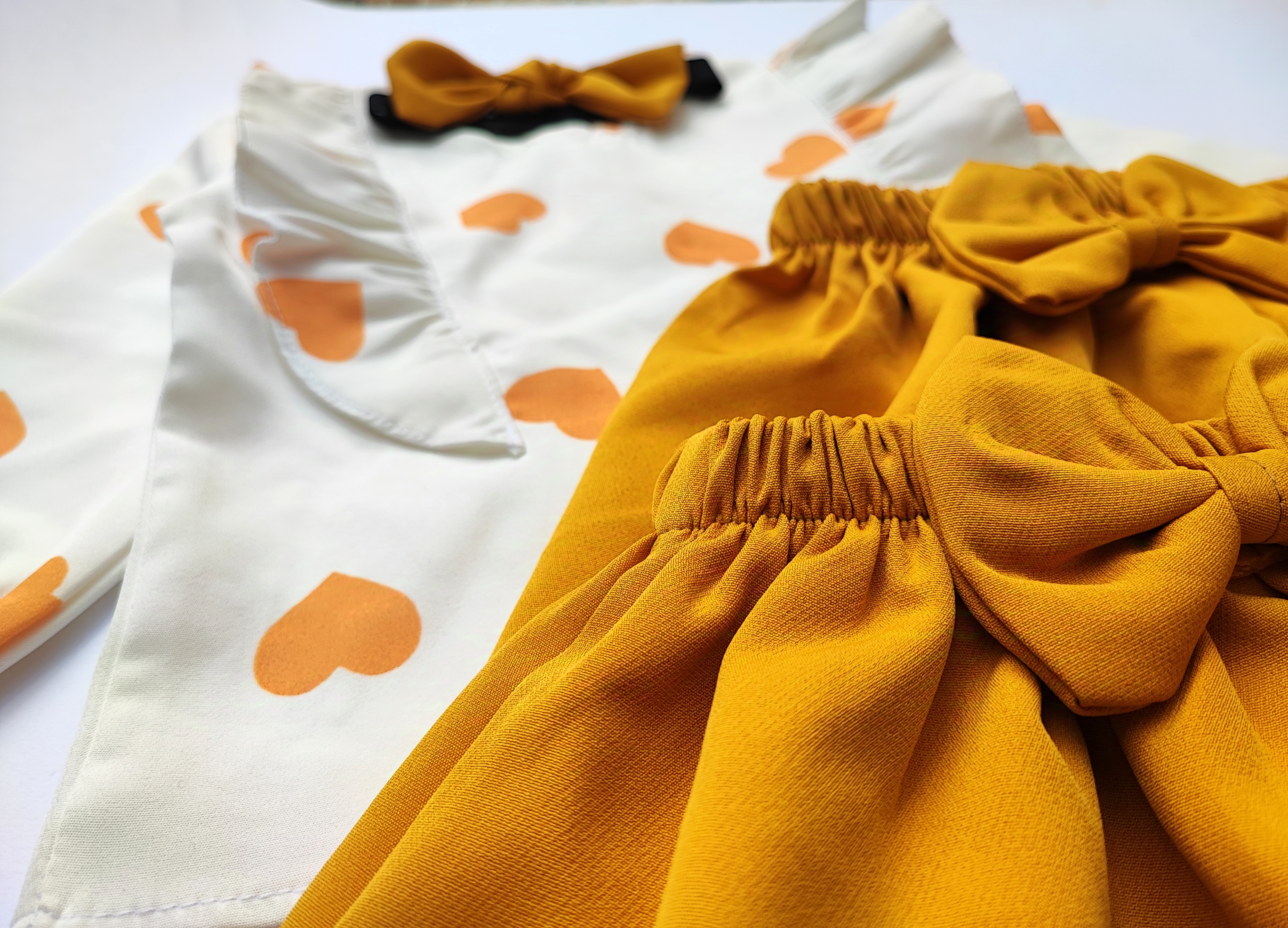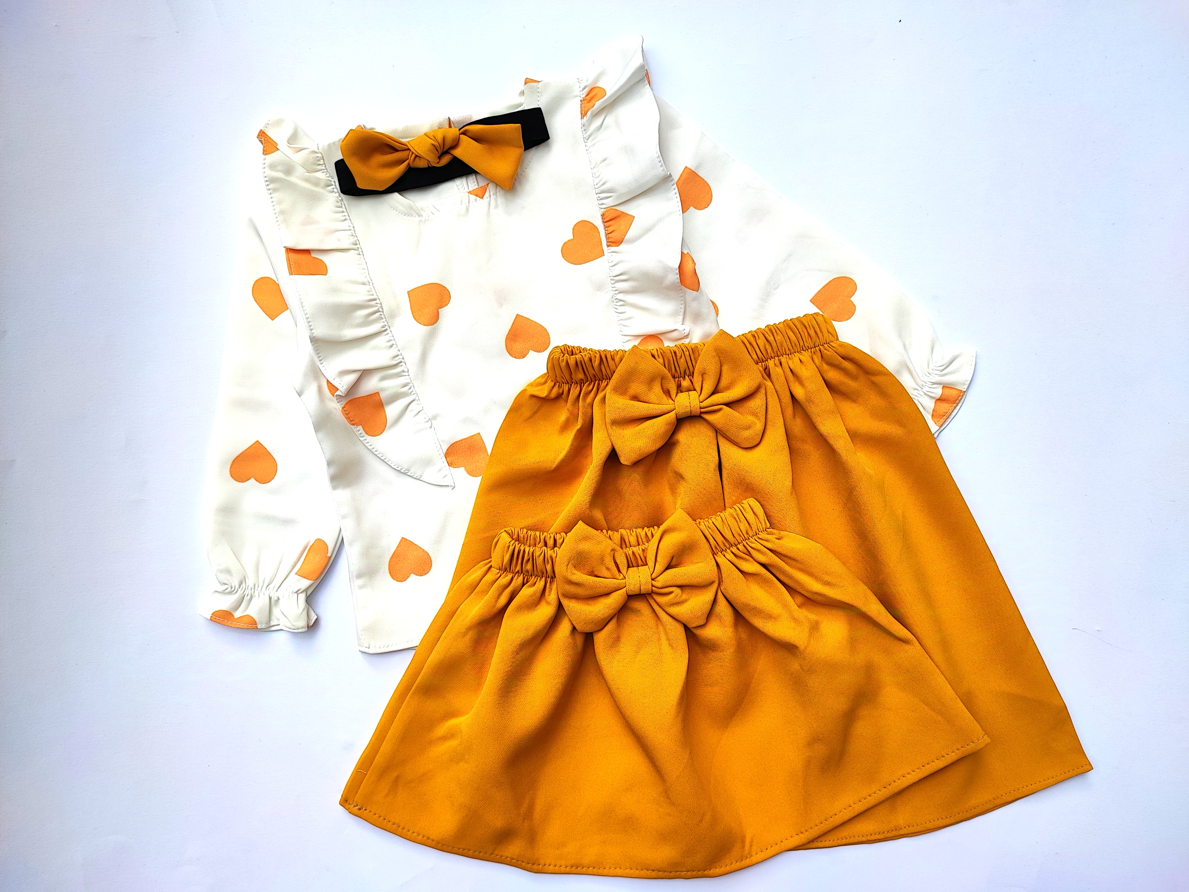 سه تیکه بادی ،شومیز+ دامن+ هدبند ست قلبی دخترانه