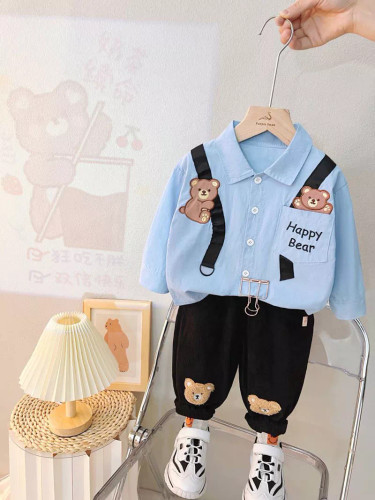 ست سه تیکه کت شلوار و بلوز اسپرت تدی کبریتی پسرانه