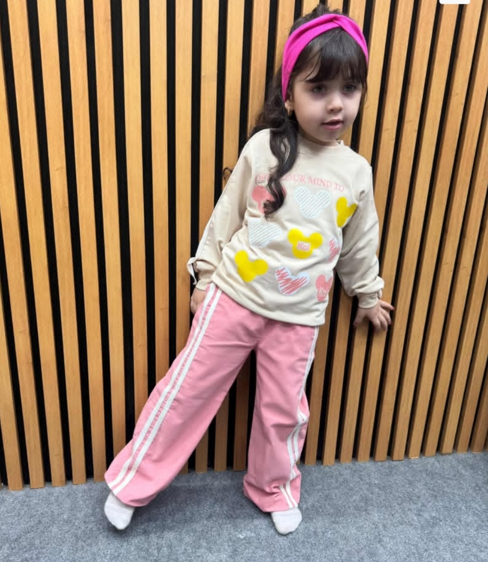 ست بلوز و شلوار دخترانه فانتزی صورتی کرم